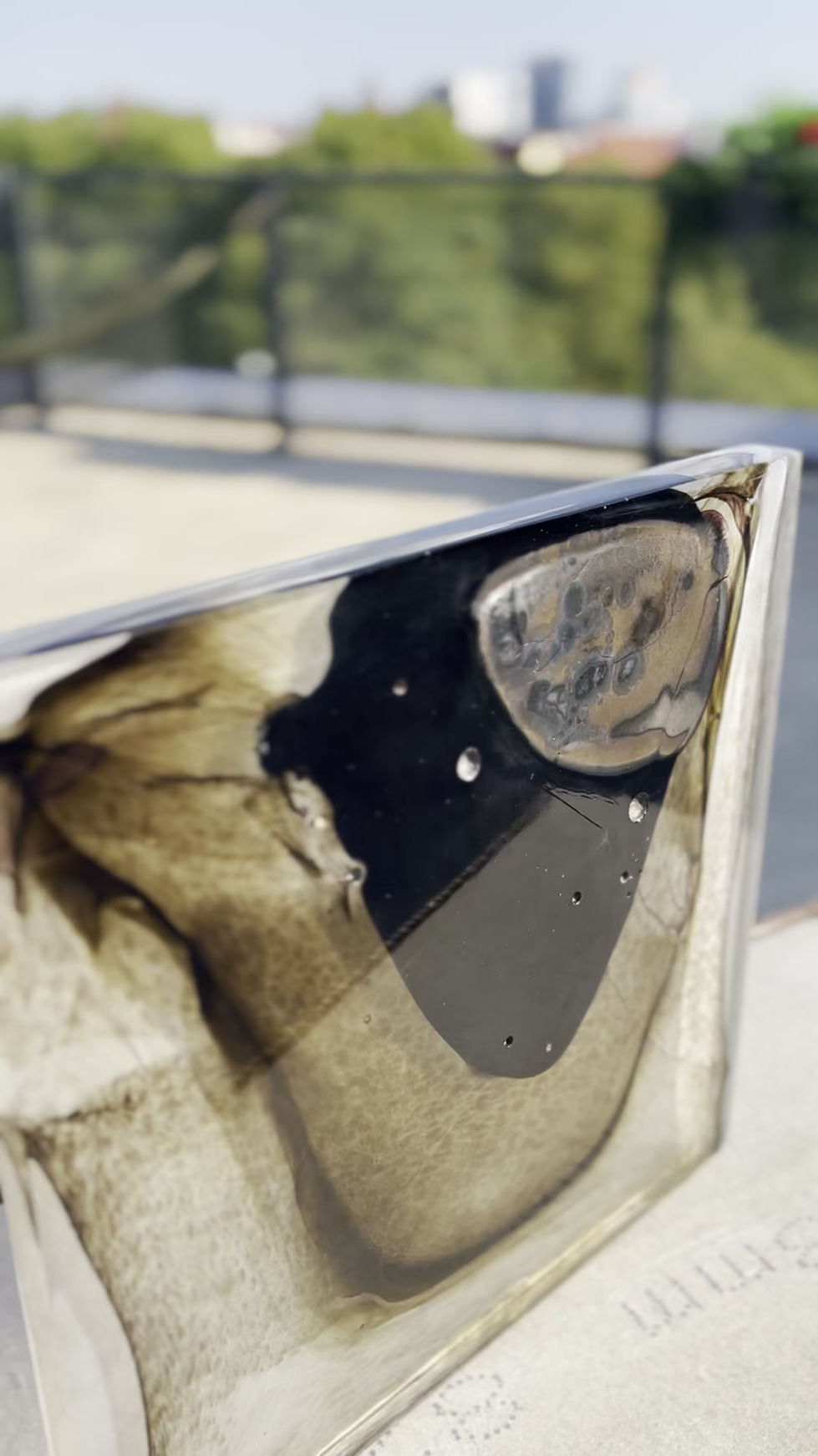 The title speaks to that hidden life, something alive and shifting inside a solid skin of glass. It’s there, visible yet unreachable, a reminder that even the heaviest materials can hold something unexpectedly elusive.